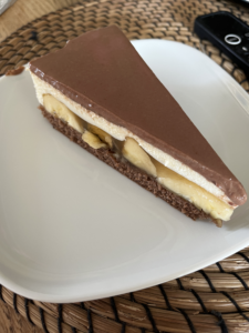 1. Die Kuvertüre schmelzen und temperieren. Danach die Bananenkuchen vollständig damit überziehen.